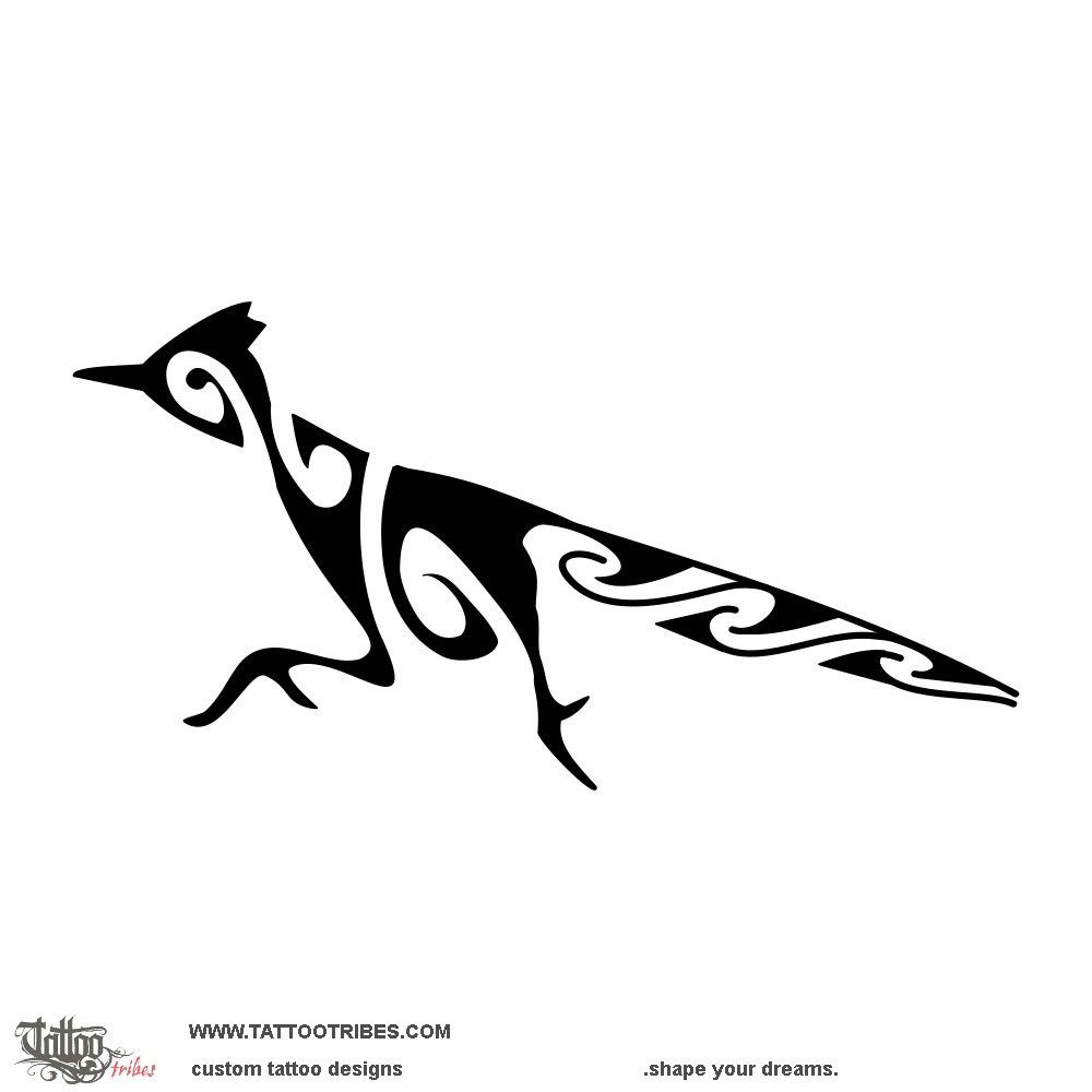 This small tribal-style roadrunner tattoo was designed for Kevin, who loves seeing them in the desert during his bike rides.