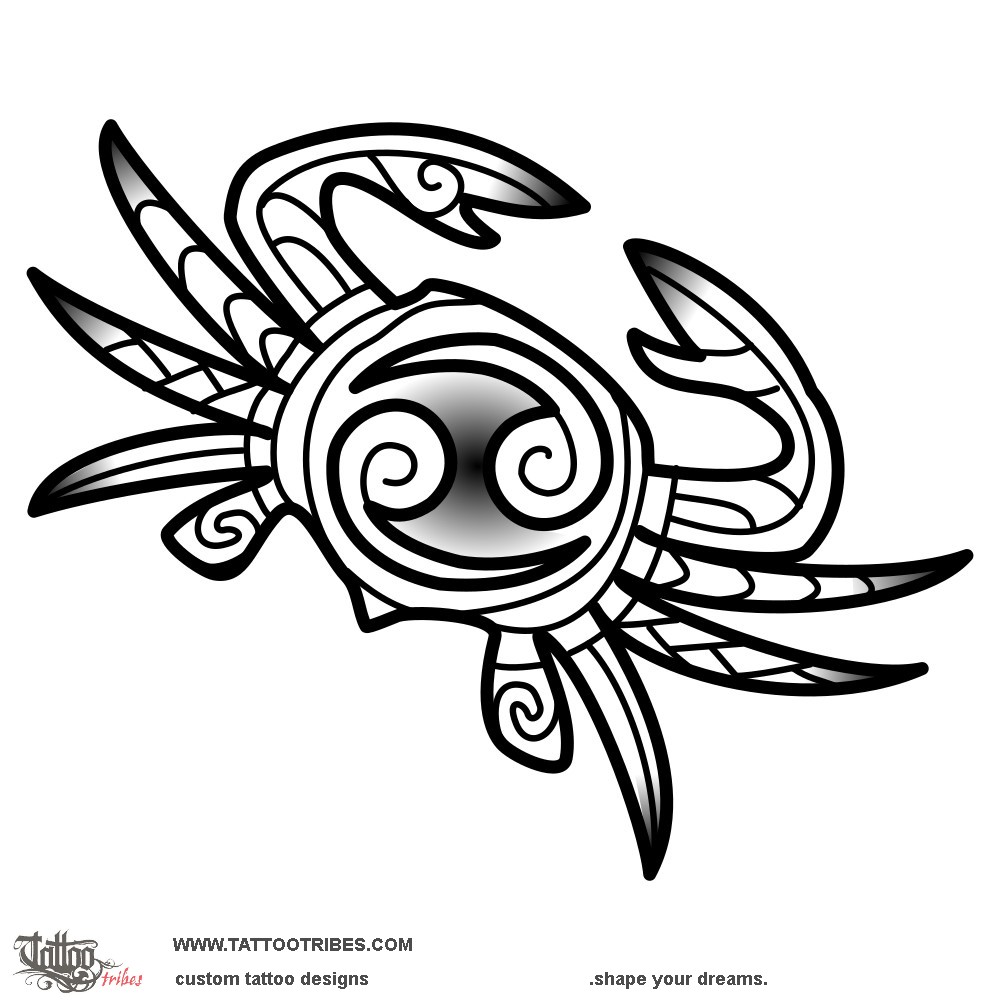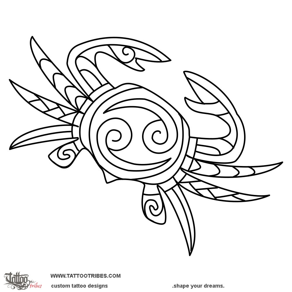 The tattoo had to be a small crab (for the cancer zodiac sign) and match the Maori inspired style of a turtle and a manaia already present on his arm.