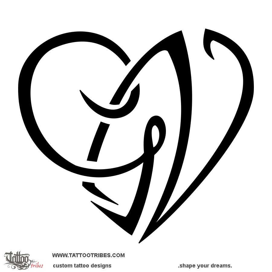 This heartigram (i.e. a heart tattoo shaped by letters) created by the union of G+N was prepared for Gabriele.